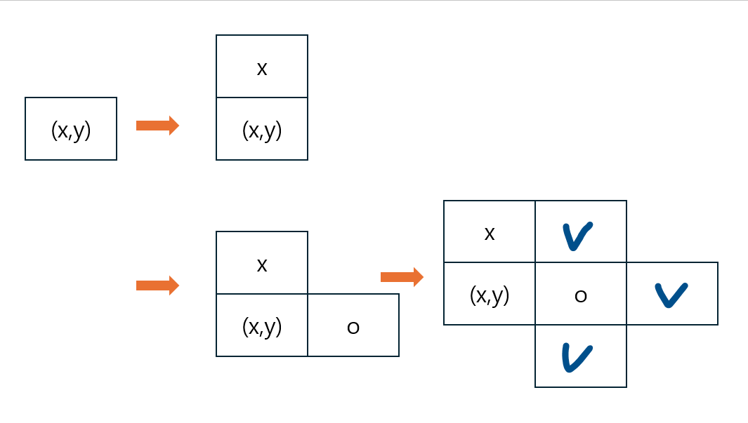 - 어떤 방향이 막혀 있다면 그 방향을 통하는 위치들을 배제하는 것이 아니라, 어떤 방향이 뚫려 있다면 그 방향을 검사하도록 해야 한다.