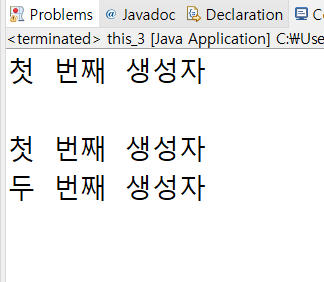 -> "첫 번째 생성자"와 "두 번째 생성자" 모두 출력
