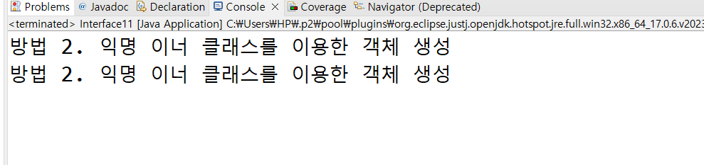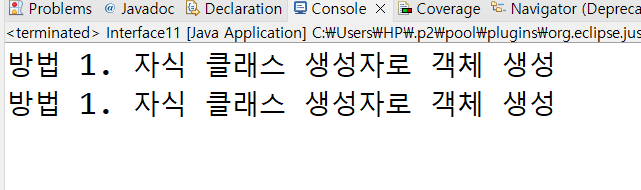 System.out.println("방법 2. 익명 이너 클래스를 이용한 객체 생성");