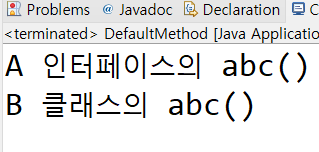 b.abc(); //B 객체의 abc()를 호출할 때 A 인터페이스의 abc() 메서드가 먼저 호출됨