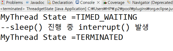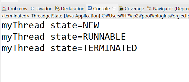 System.out.println("myThread state="+state);