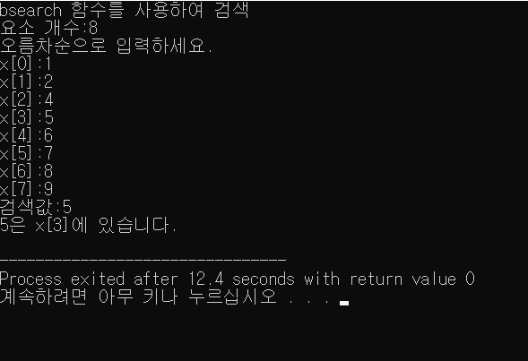 - bsearch 함수를 사용해 오름차순으로 정렬된 배열을 검색