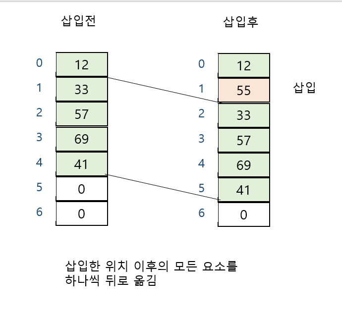 -삽입 요소의 다음 요소를 하나씩 뒤로 옮겨야 함