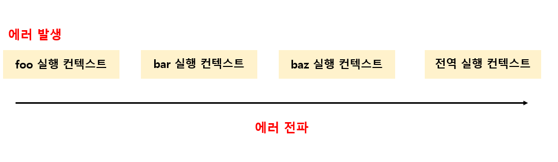 - foo 함수가 thorw한 에러는 호출자에게 전파되어 전역에서 캐치