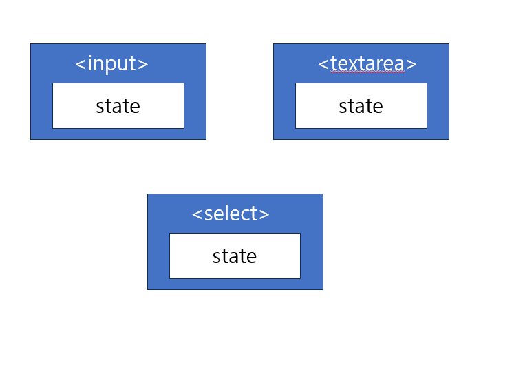 - <input>, <textarea>, <select>가 각각 내부의 state를 관리하고 있음