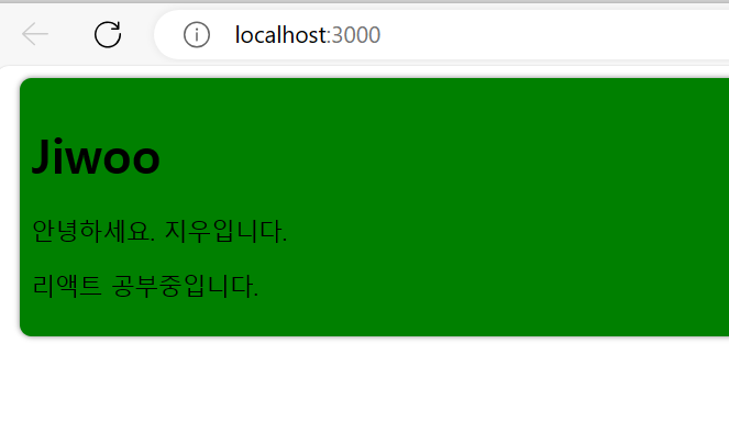 - Card 컴포넌트를 사용하여 title에 이름을 넣고, backtroundColor를 녹색으로 설정