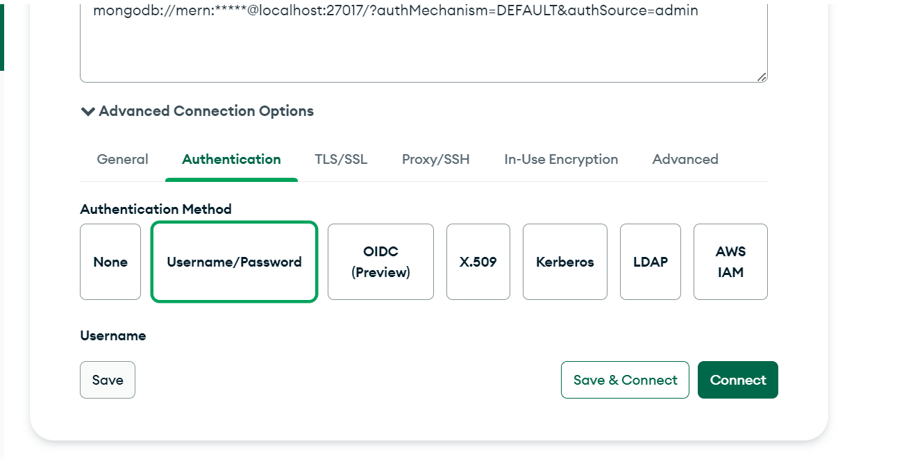 `mongodb://mern:merntest@localhost:27017/?authMechanism=DEFAULT&authSource=admin`