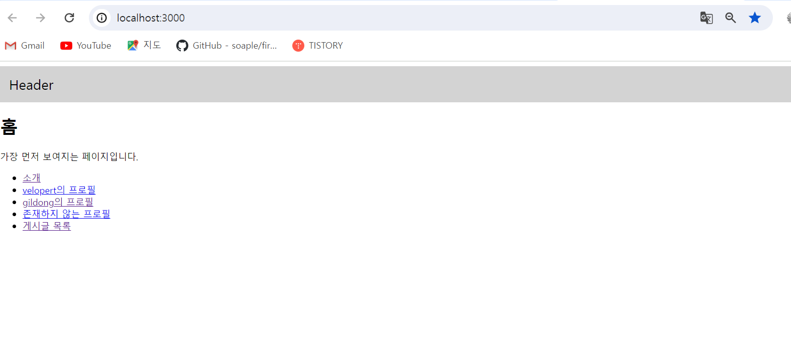 - 각 페이지 컴포너트가 보여져야 하는 부분에 Outlet 컴포넌트를 사용