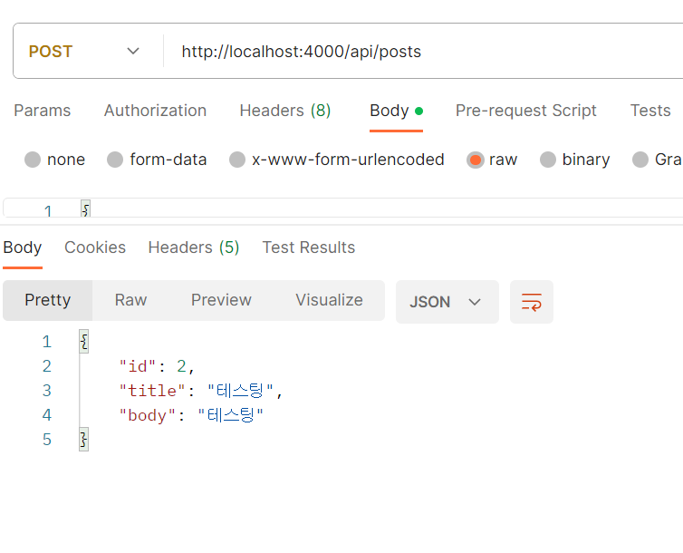 - 포스트를 작성할 때 서버는 title, body, tags 값을 모두 전달받아야 하고 클라이언트가 값을 빼먹었을 떄는 400 오류 발생해야함