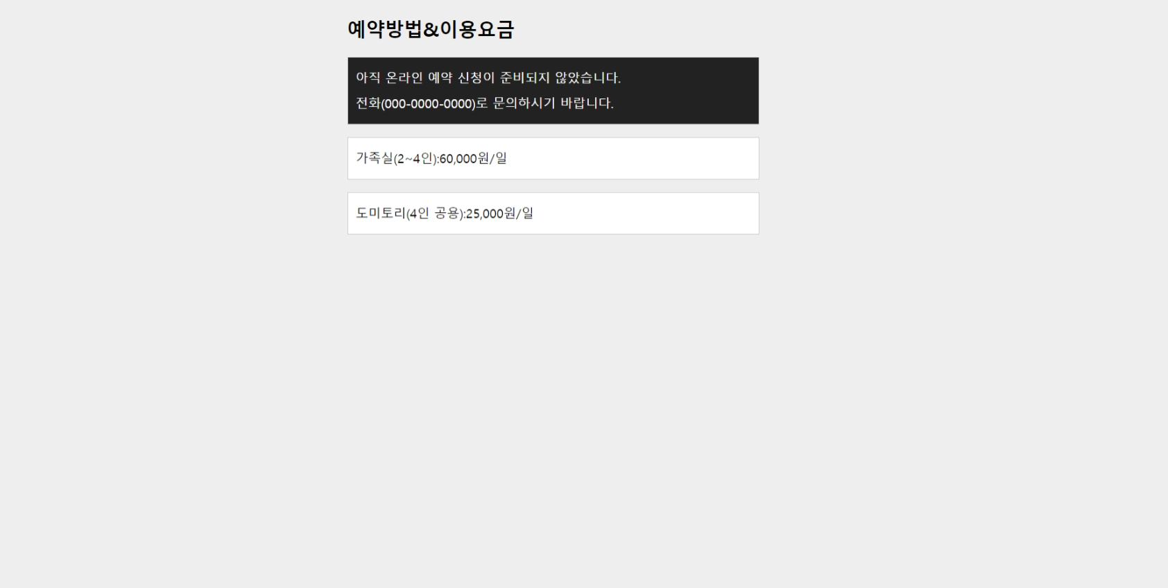 <p>가족실(2~4인):60,000원/일</p>