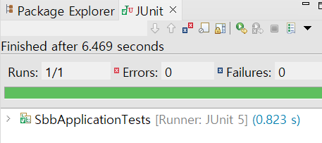 SbbApplicationTest 클래스 실행