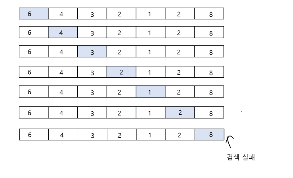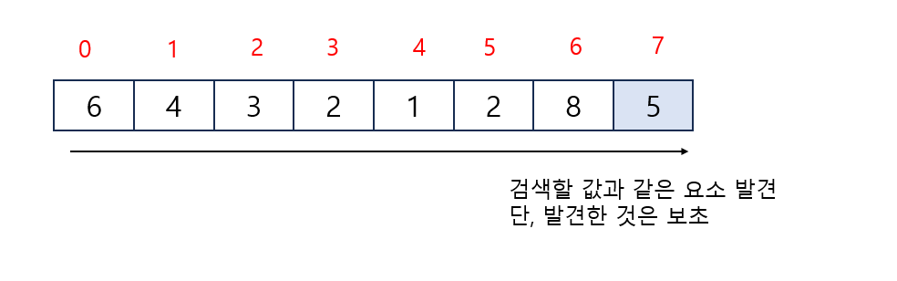 - 맨 끝 요소 a[7]은 검색하기 전에 값을 저장하는 보초(sentinel)