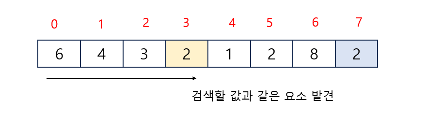 - 만약 값이 key인 요소가 여러 개 존재하면 검색 과정에서 처음 발견한 요소의 인덱스를 반환