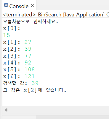 int index = binSearch(x,num,key); //배열 x에서 값이 key인 요소를 검색