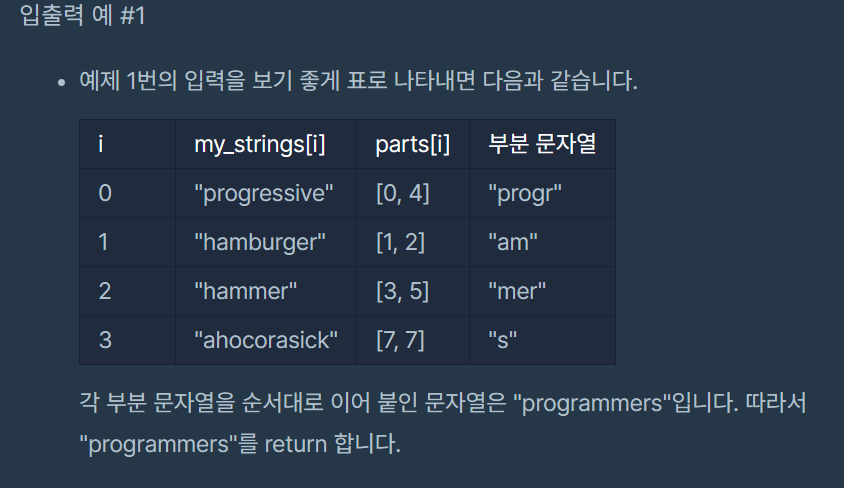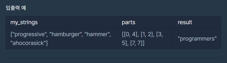 public String solution(String[] my_strings, int[][] parts) {
