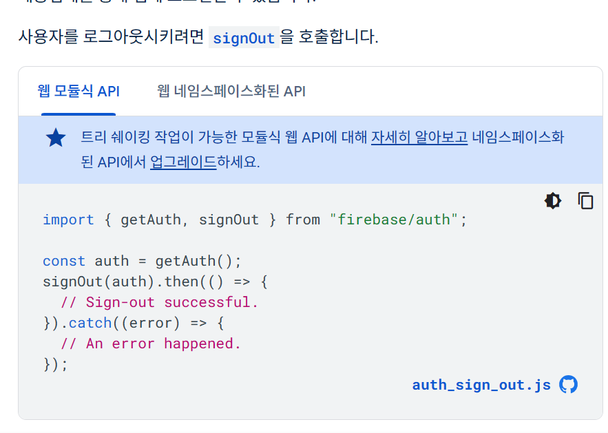 - 회원가입이 완료되면 파이어베이스는 자동으로 로그인 상태로 전환한다.