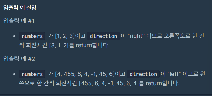 public int[] solution(int[] numbers, String direction) {