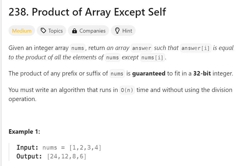 https://leetcode.com/problems/product-of-array-except-self/description/