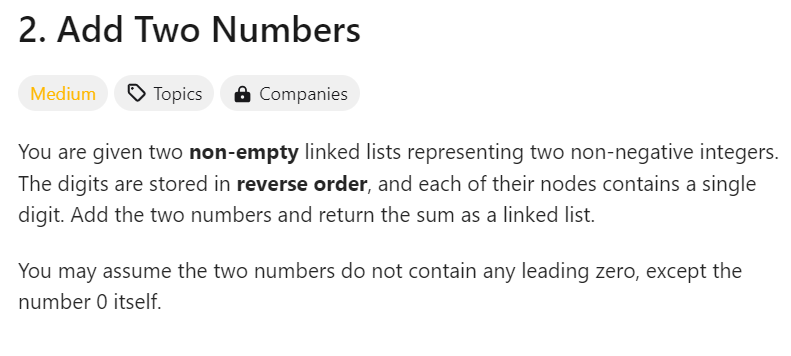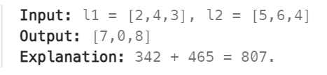 public ListNode addTwoNumbers(ListNode l1, ListNode l2)