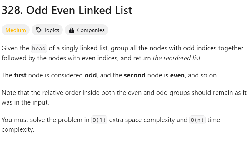 https://leetcode.com/problems/odd-even-linked-list/description/