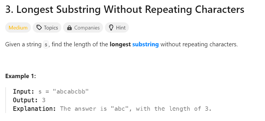 https://leetcode.com/problems/longest-substring-without-repeating-characters/description/