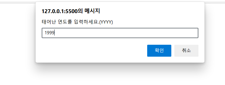 birthYear= prompt("태어난 연도를 입력하세요.(YYYY)","");