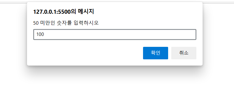 var numberTwo=prompt("50 미만인 숫자를 입력하시오");