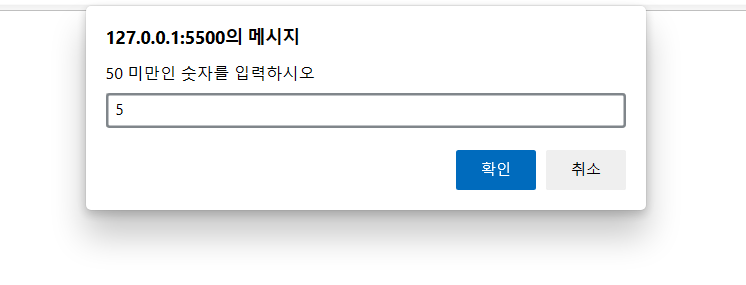 var numberOne=prompt("50 미만인 숫자를 입력하시오");