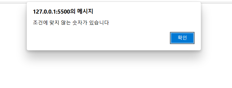 alert("조건에 맞지 않는 숫자가 있습니다");