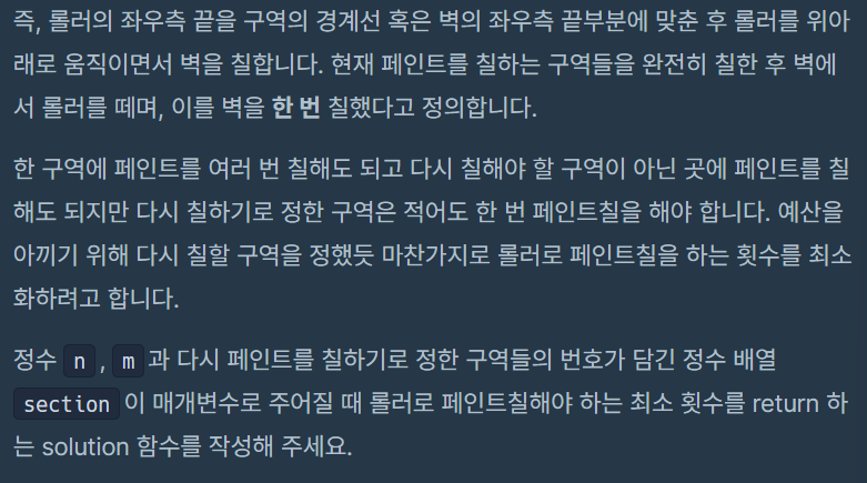 - section[0] 구역부터 시작하여 m-1까지 한번에 칠할 수 있다.