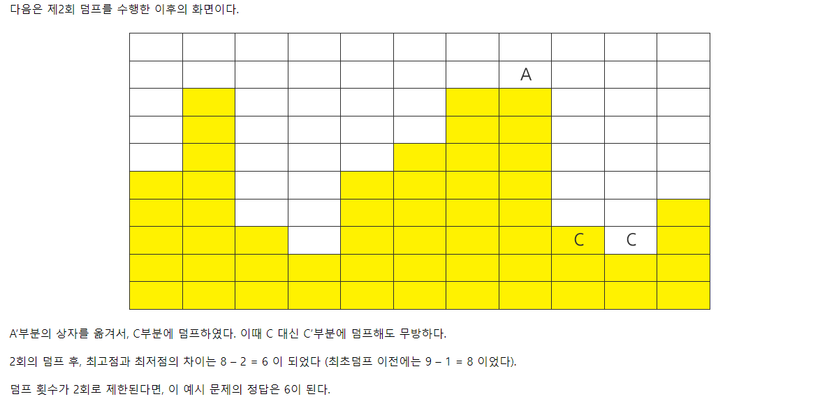 int count = sc.nextInt(); //덤프할 수 있는 최소 횟수