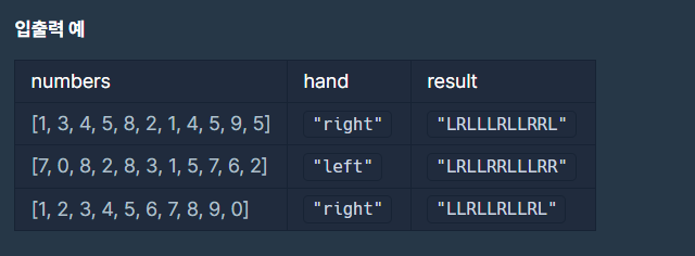 - 가운데 열 숫자(2,5,8,0)은 현재 손 위치와 목표 숫자의 위치 간의 맨해튼 거리를 계산해 가까운 손으로 누른다.