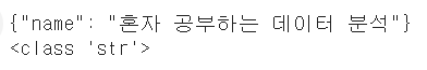 d = {"name":"혼자 공부하는 데이터 분석"} ##json 형식은 키와 값에 큰 따옴표를 사용