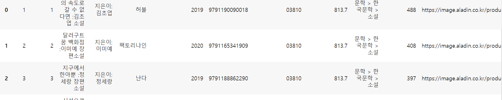- apply() 메서드의 첫 번째 매개변수는 실행할 함수이다. 따라서 데이터프레임의 한 행을 받아 get_page_cnt() 함수를 사용해 쪽수 구하는 함수를 만들어야 한다.