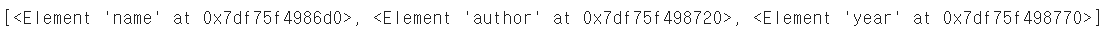 - book 객체의 findtext() 메서드를 사용하면 해당하는 자식 엘리먼트를 탐색하여 자동으로 텍스트를 반환할 수 있다.