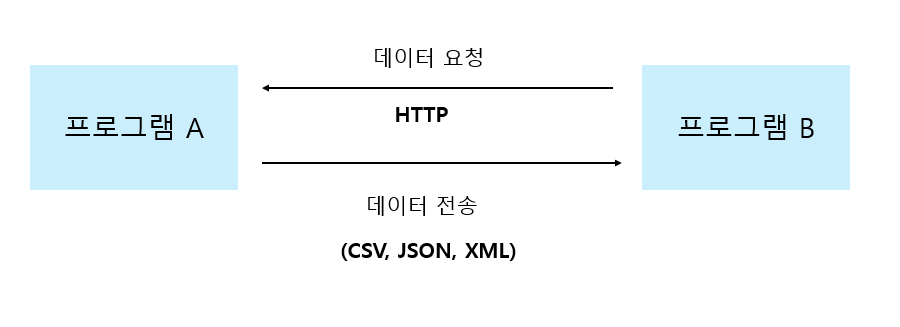 - 웹 기반 API는 웹 서버와 웹 브라우저가 대화하는 방식과 비슷하다. HTTP 프로토콜을 사용하지만 HMTL을 주고받는 것이 아니라 일반적으로 CSV, JSON, XML 같은 파일을 사용한다.