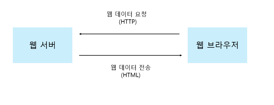 - 웹 브라우저가 웹 서버에 웹 페이지를 요청하고, 웹 서버는 요청에 맞는 웹 페이지를 웹 브라우저에게 전송한다.