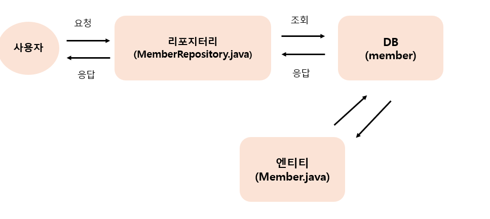 - 스프링 데이터 JPA를 사용하면 리포지터리 역할을 하는 인터페이스를 만들어 데이터베이스의 테이블 조회, 수정, 생성, 삭제 같은 작업을 간단히 할 수 있다.